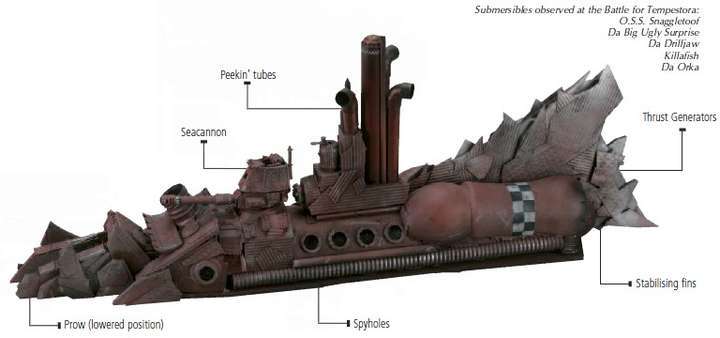 在接管乌尔戈克的舰队前,这支舰队规模便已然非常可观。而当搞哥毛哥的先知接手后,它更是呈指数级扩张。如同所有兽人造物一般,这支舰队混乱不堪,多数舰船由银河中的废弃残骸拼凑而成,另一些则是从其他种族那里抢来并"升级改造"的战舰。它们来自银河各处,有些甚至来自远古时代,是从亚空间中打捞出的古董。即便是同型号的舰船也因临时改装而千差万别,毕竟每个技霸都热衷于见缝插针地加装炮台、导弹井、鱼雷管等各种"能发射的玩意儿"。