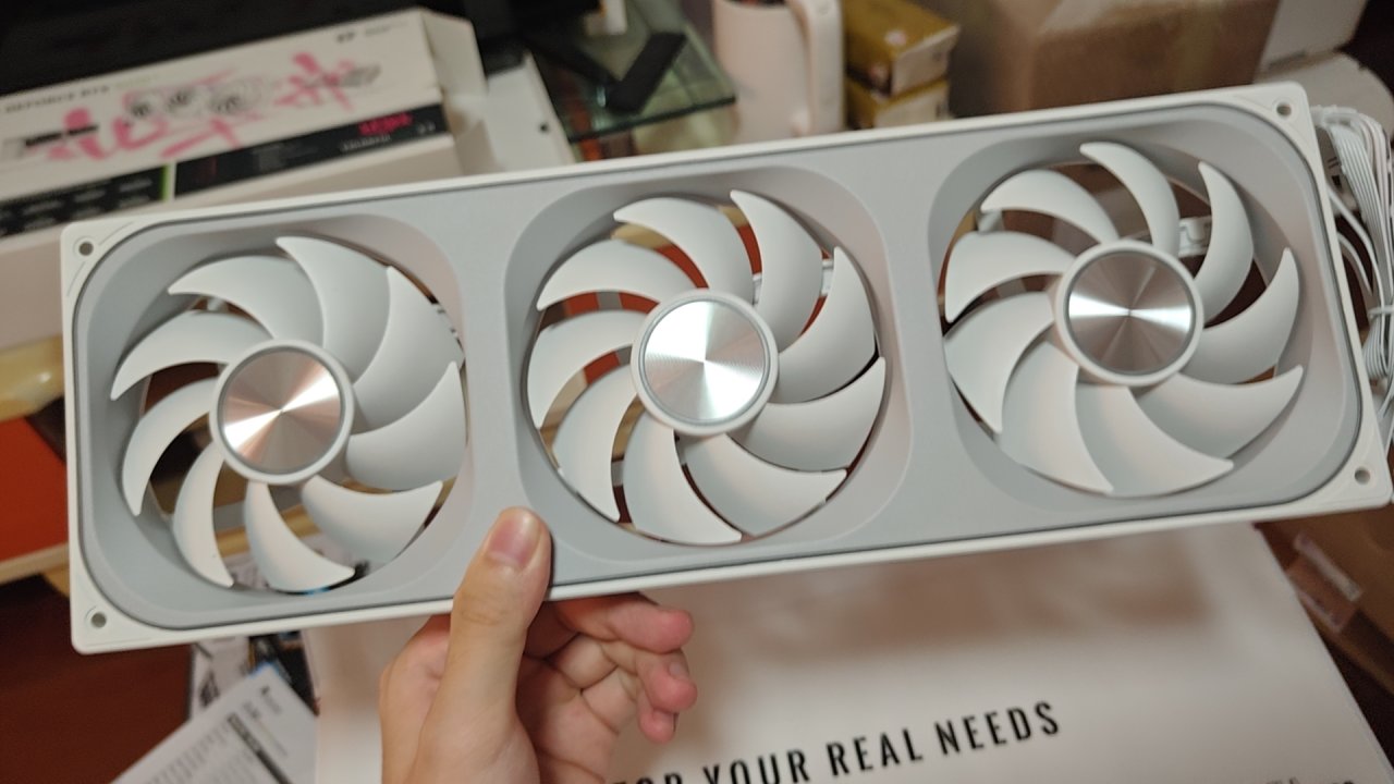 與傳統的獨立風扇或積木風扇不同,它是完全一體式的,不可拆卸的,像本次的星璨小嵐,風扇位是上下各3*12,再加尾部一個12cm風扇,在購買喬思伯風扇時就需要買一個ZA360正葉,一個ZA360反葉,一個ZA120正葉,與傳統風扇或積木風扇倒是不太一樣,到手也不需要自己拼裝,甚至擰螺絲都只需要擰四顆還是相當滴方便口牙
