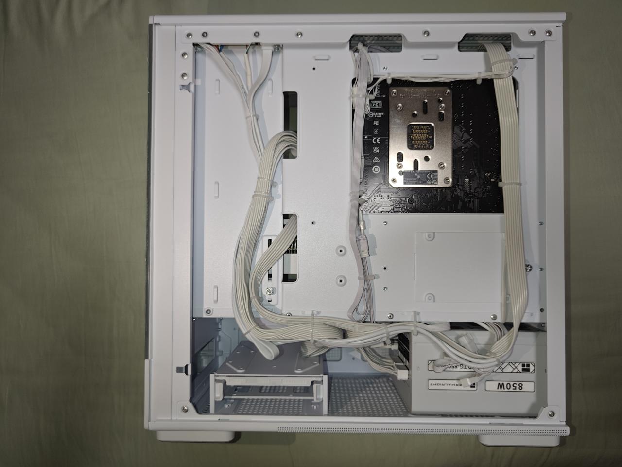 裝機過程略,反正是比較常規的結構,沒什麼好說的,唯一有一點需要重點注意的就是,一定要先裝上面的風扇,再固定主板和散熱器否則會因爲空隙太小導致風扇塞不進去