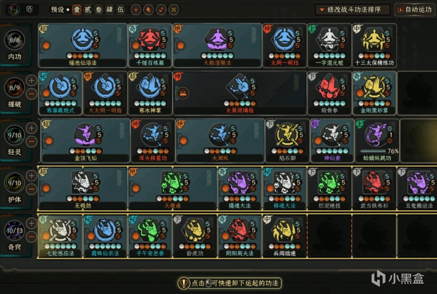 一个斗蛐蛐的娱乐玩法,里面的蛐蛐就有千种不同品级和种类的蛐蛐,至于武侠世界核心的功法就更难崩了,1000多种功法能够随意搭配还要正逆练,玩个游戏跟搞科研一样,这也是不少玩家沉迷于它的原因。