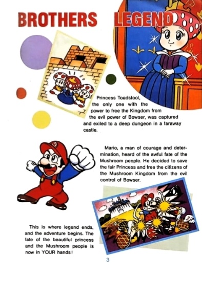 • 在1985年的《超級馬里奧兄弟完全攻略本》中桃花公主雖然保留了大部分人類特徵,但是頭頂的蘑菇設計與其他版本形象大不相同。