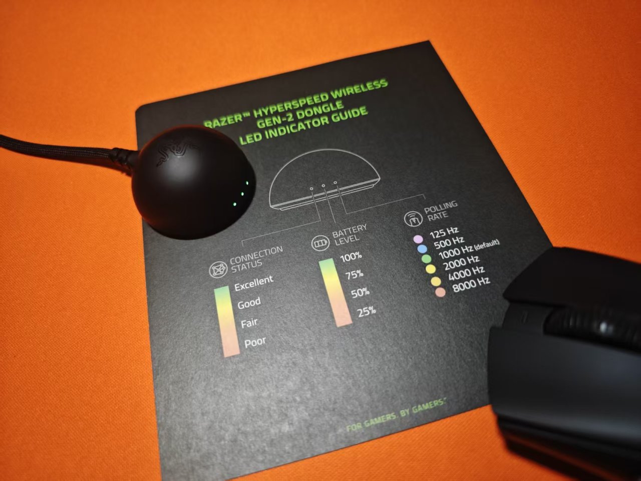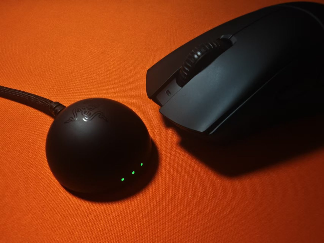 值得一提的是,全新信號接收器改爲半球型,學過通信原理基礎都知道比起方型設備,這種半球型能夠更好接收來自各個方向的信號。前方有三個小燈,可以通過燈光顏色來判斷鼠標狀態,確實很有意思。