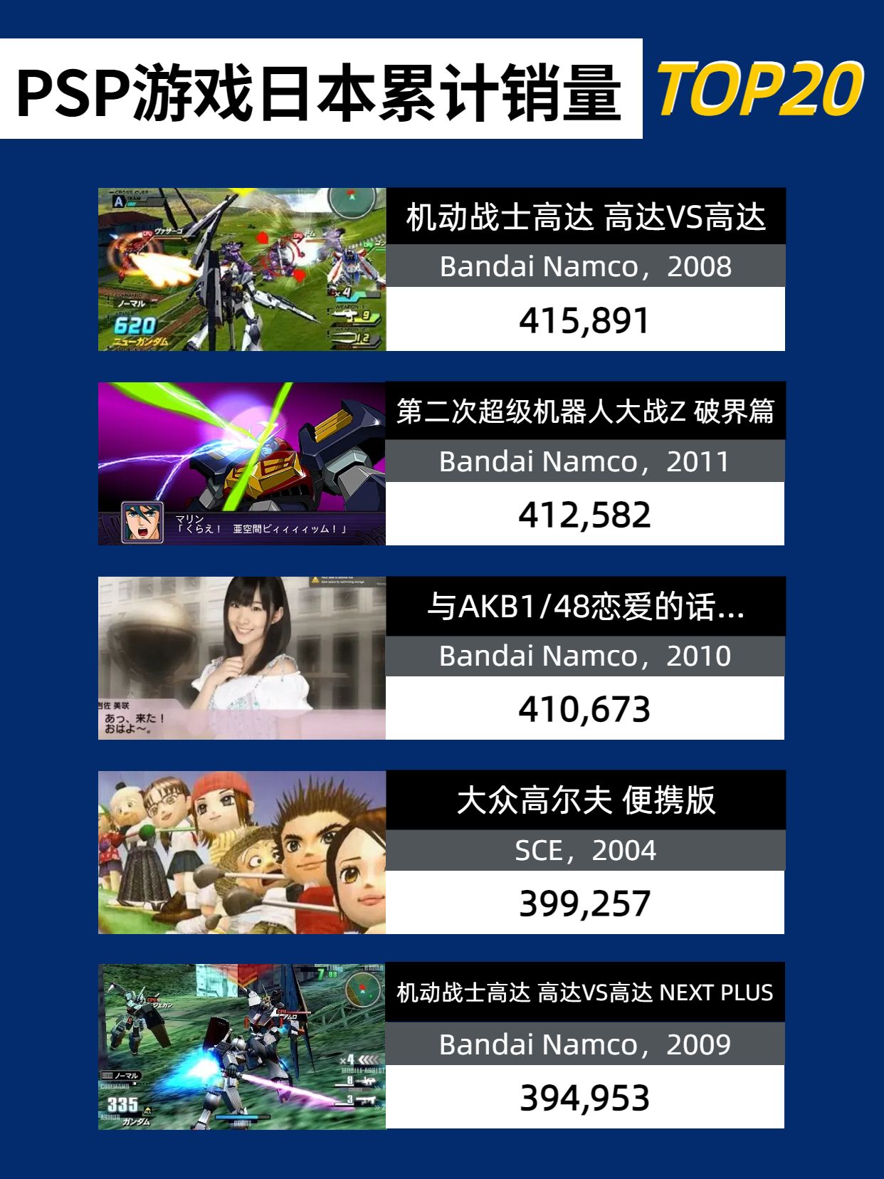 当年怪物猎人P3和P2G(数据均含best版)真的是统治级别的存在,可谓断层级领先。两款最终幻想游戏也进入了前五。梦幻之星便携版两作也有上榜,很怀念的名字