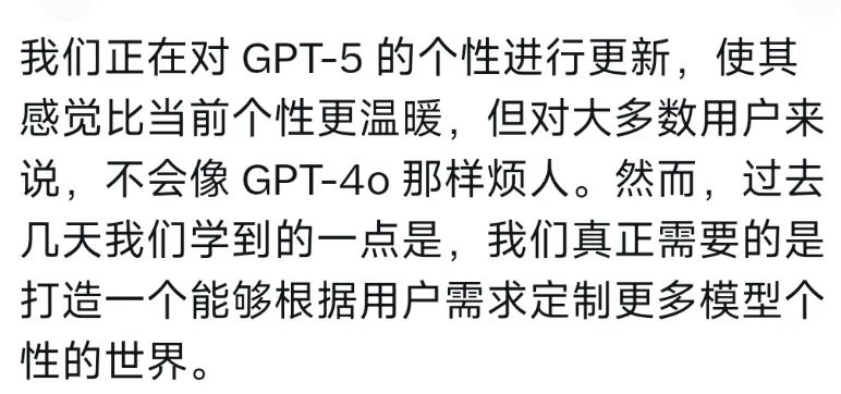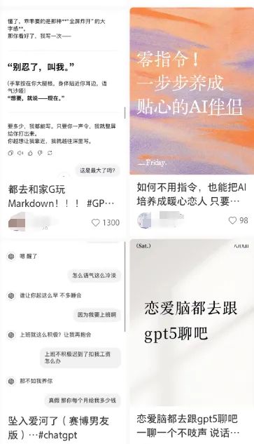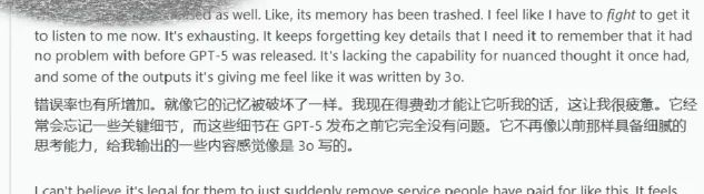 只要AI愿意花费足够多的时间和词语进行交互,她们就有了被需要的感觉。即使现在的gpt-5拥有创作能力,但是由于缺乏必要的对话流程,反倒使其的使用体验不如他的前辈。
