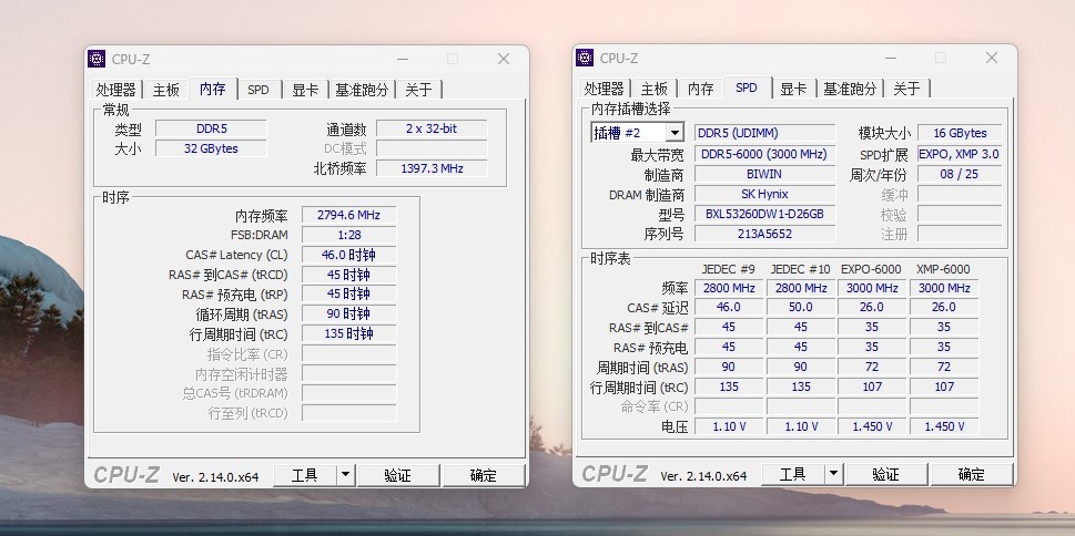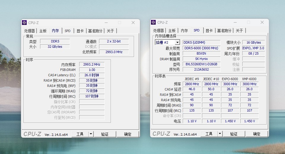 内存页,默频工作在5600MHz,支持EXPO 6000MHz CL26。