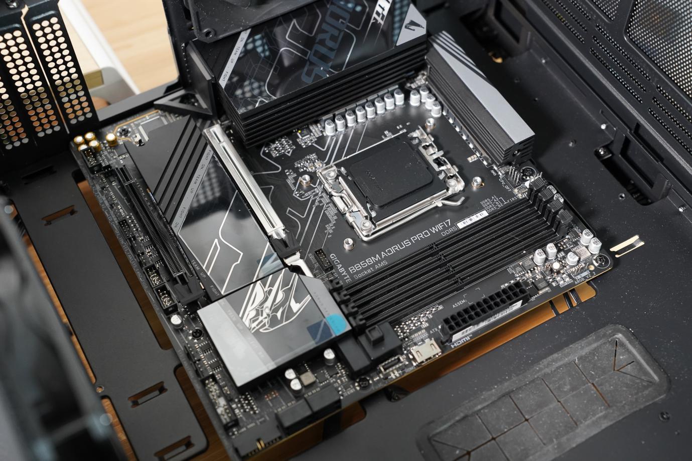 在测试前分享下装机过程,装机是容易被人忽略的部分,因为有尺寸规格等原因,会有不同的配件间相互干扰、位置重叠的困扰发生,我们看这款技嘉B850M AORUS PRO WIFI7在实际安装中的表现如何。
