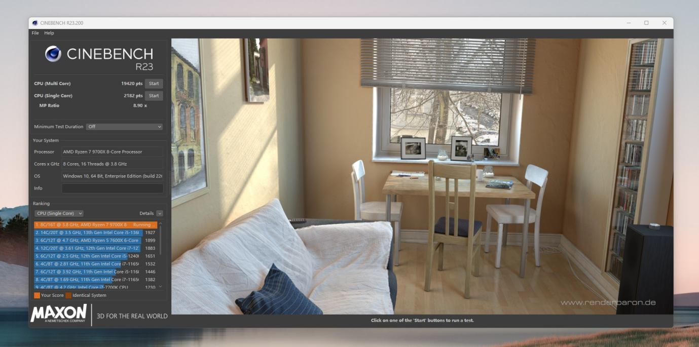 CINBENCH R23测试,多核19420,单核2182。