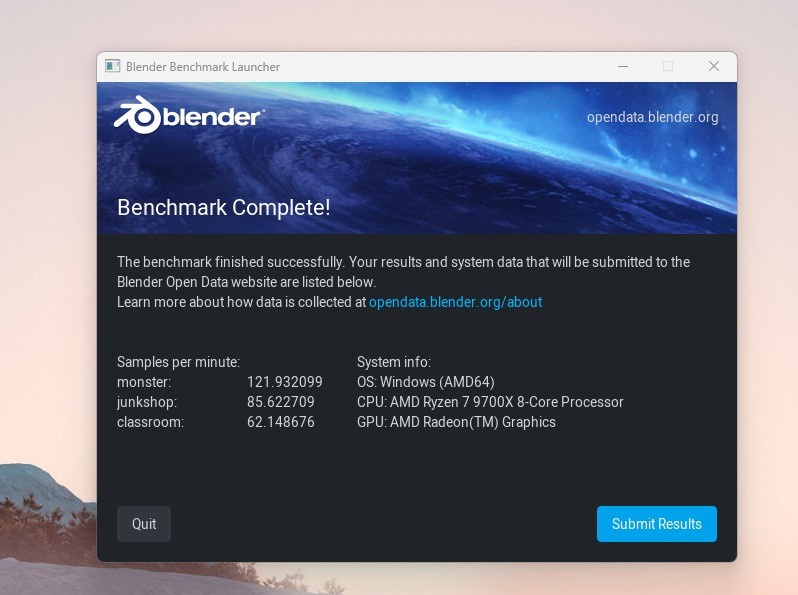 生产力BLENDER测试,monster场景121.932099,junkshop场景85.622709,classroom场景62.148676。