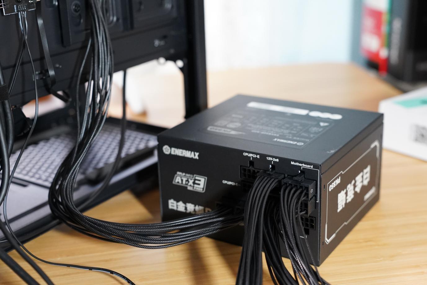 电源使用的是安耐美的白金竞蝠PK 850W,顾名思义,这是款850W 80PLUS白金认证的电源,看上图电源包装盒上面的标识,这款电源还同时支持PPLP.INFO白金认证,是款双白金认证的电源,同时支持ATX 3.1和12V-2x6(PCIe 5.1)。