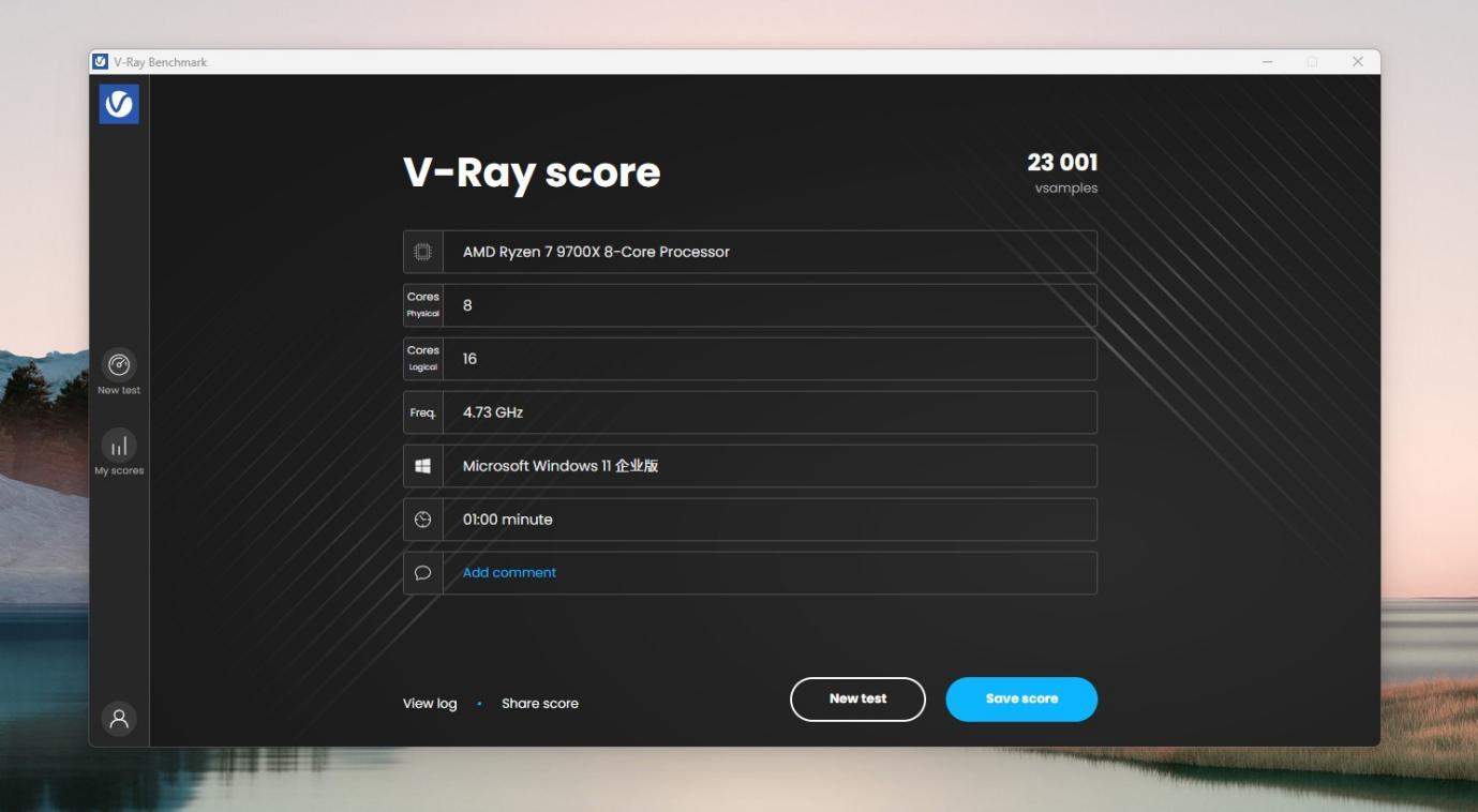 V-RAY CPU测试,跑分23001。