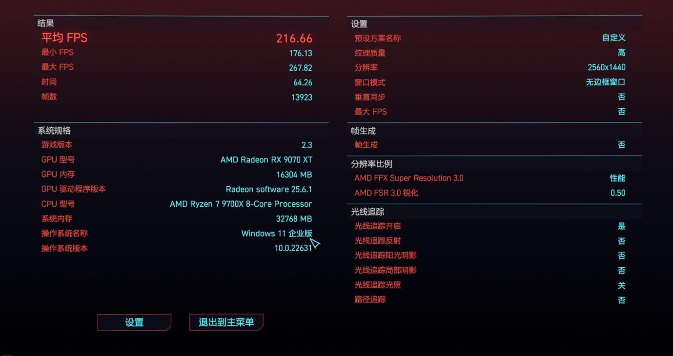 3A大作赛博朋克2077,平均帧率216.66,前值207.71,再之前是181.20;最小帧率176.13,前值170.49,再之前是131.18,同样是帧数持续提高。