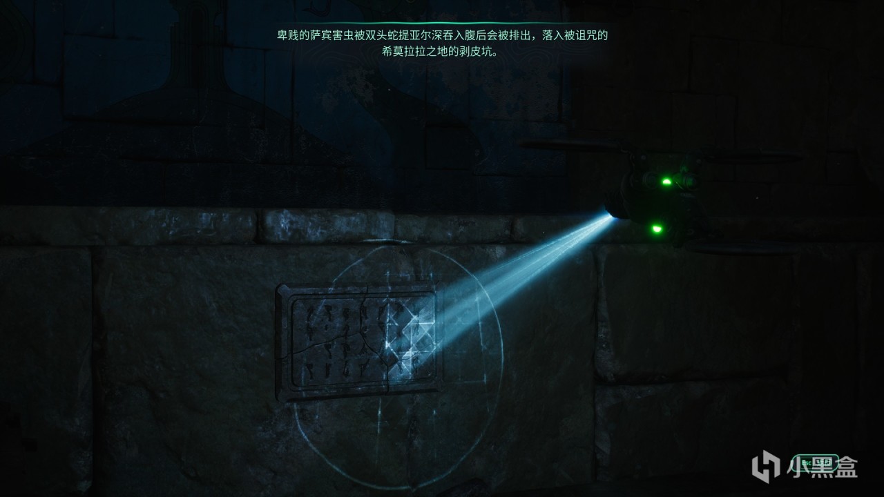 緊接着登場的是解密玩法,本作的解密不算很難只需要簡單動動腦子就可以通過,拿第二個解密來打比方,它是需要我們去掃碼一些古文獲取關鍵信息(雙頭蛇)