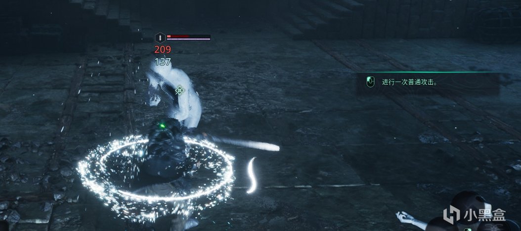 而是主角一個小小的專屬技能——攻擊冒白光積攢能量,然後再特定實際按下便會回血,老實說作爲一個戰鬥玩法的苦手,我個人非常喜歡這個機制。過往一看見回血道具基本都是什麼限量的紅藥酒葫蘆,亂用直接得回篝火裏重開,來到這個遊戲裏攻擊就能積攢白血,有種打工人突然獲得了一個按就給掉錢的大紅按鈕的既視感,每砍敵人一刀就有回血機會我都感覺自己賺麻了,讓以格擋爲主的戰鬥充滿了爽感。