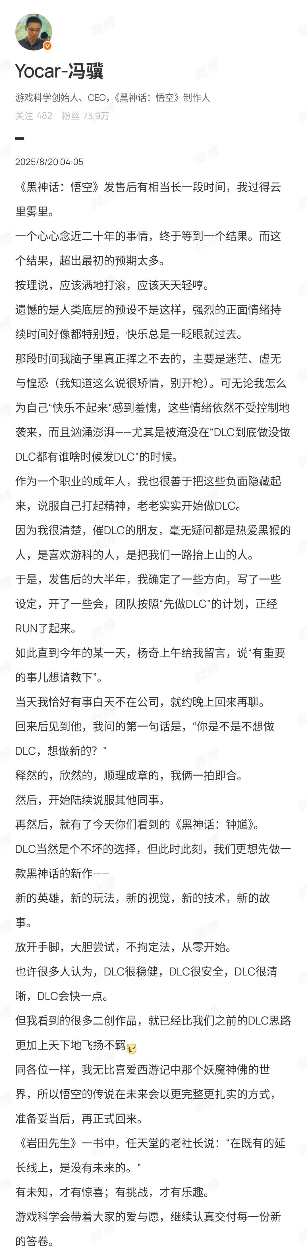 当然,就目前公布的内容来看,对《黑神话:钟馗》以及游科接下来动作的揣测都多少显得有点“证据不足”,但这就正如冯骥在微博中提到的那句话一样:「有未知,才有惊喜;有挑战,才有乐趣」。