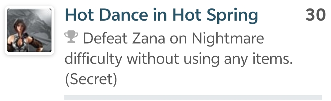 在噩夢難度下擊敗扎娜,且不使用任何道具。