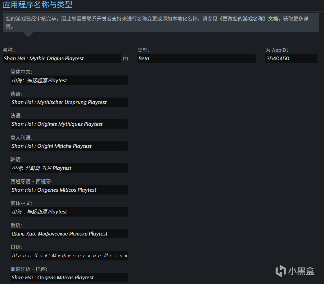 所以我們想多添加幾國語言,結果呢,這個測試版的語言一旦自己確定了,就不能隨便添加了。但是呢Steam也給了個口子,就是聯繫他們的開發者支持就可以變更了。