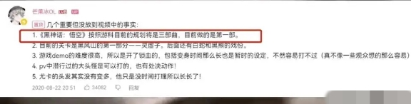 公布后不久,游戏科学联合创始人兼美术总监杨奇在社交媒体(主要是Weibo)上发布了一篇长文,分享了自己的想法,并积极与网友互动。这篇长文被视为对玩家关切的正式回应,杨奇谦虚地阐述了团队的开发理念和未来规划。