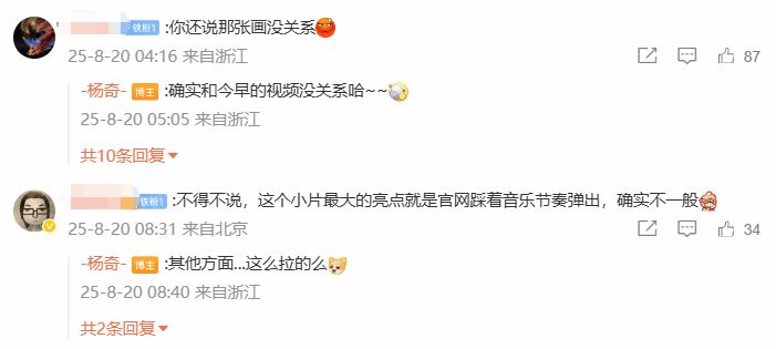 另一位博主称赞游戏科学敢于探索新题材的勇气:“锦上添花的事儿先放放,继续在探索新题材上奋勇向前,这份胆魄令人无比钦佩!永远支持游科的各位,加油。”杨奇则谦虚地回应:“胆魄是啥,那倒谈不上啦… 对于一些成熟的单机团队,两个项目中前期交替并行,肯定是最健康的节奏,无论是从创意还是流程角度。不过,团队协作的基本功还得再打扎实些,人手也得再多一些,我们加油…”