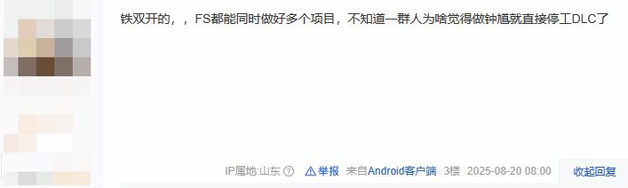 另有玩家持反对意见,举例FromSoftware(FS社)能多开项目,认为游戏科学也有潜力。