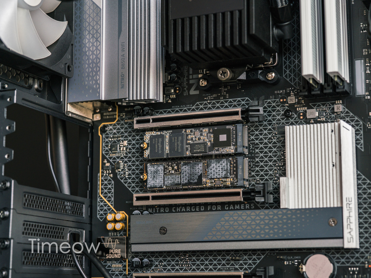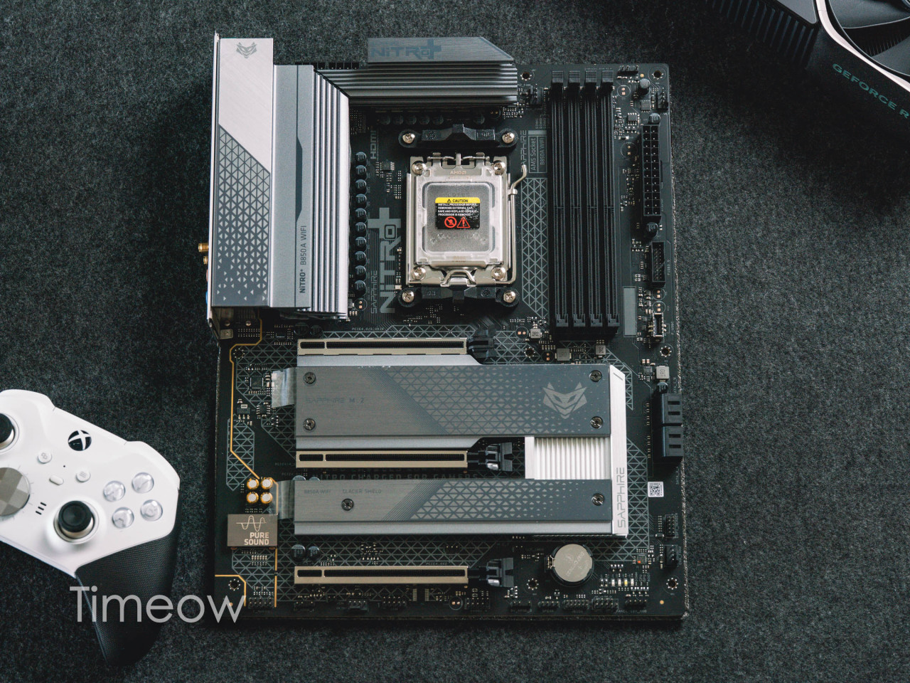 主板的話,B650就夠用了,X870的主板芯片組和前者並沒有拉開質的差距,對於玩家來說,把錢省下來用在顯卡的提升上更好一些。我用的是藍寶石NITRO B650A,性價比還可以,BIOS功能也夠耍一耍的,而且散熱規模應該是同級最強的吧~