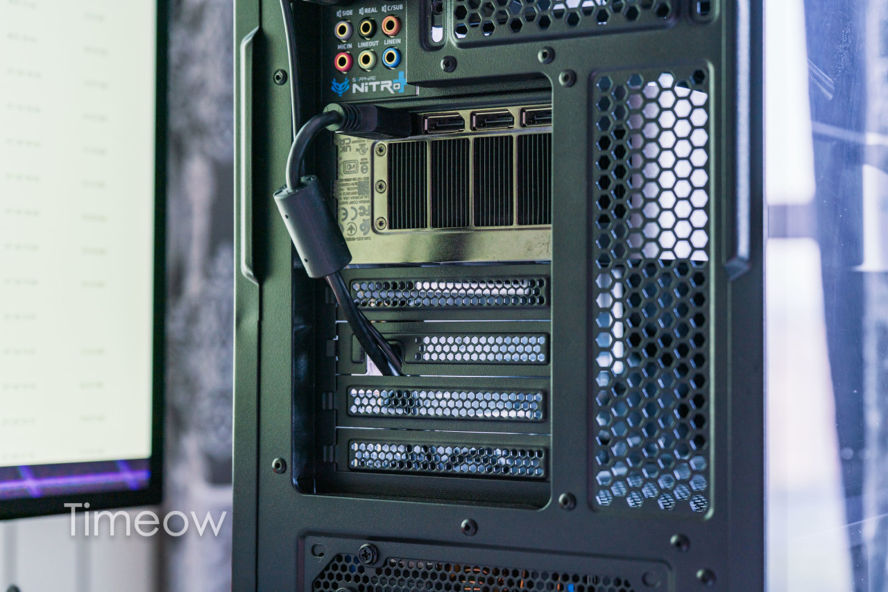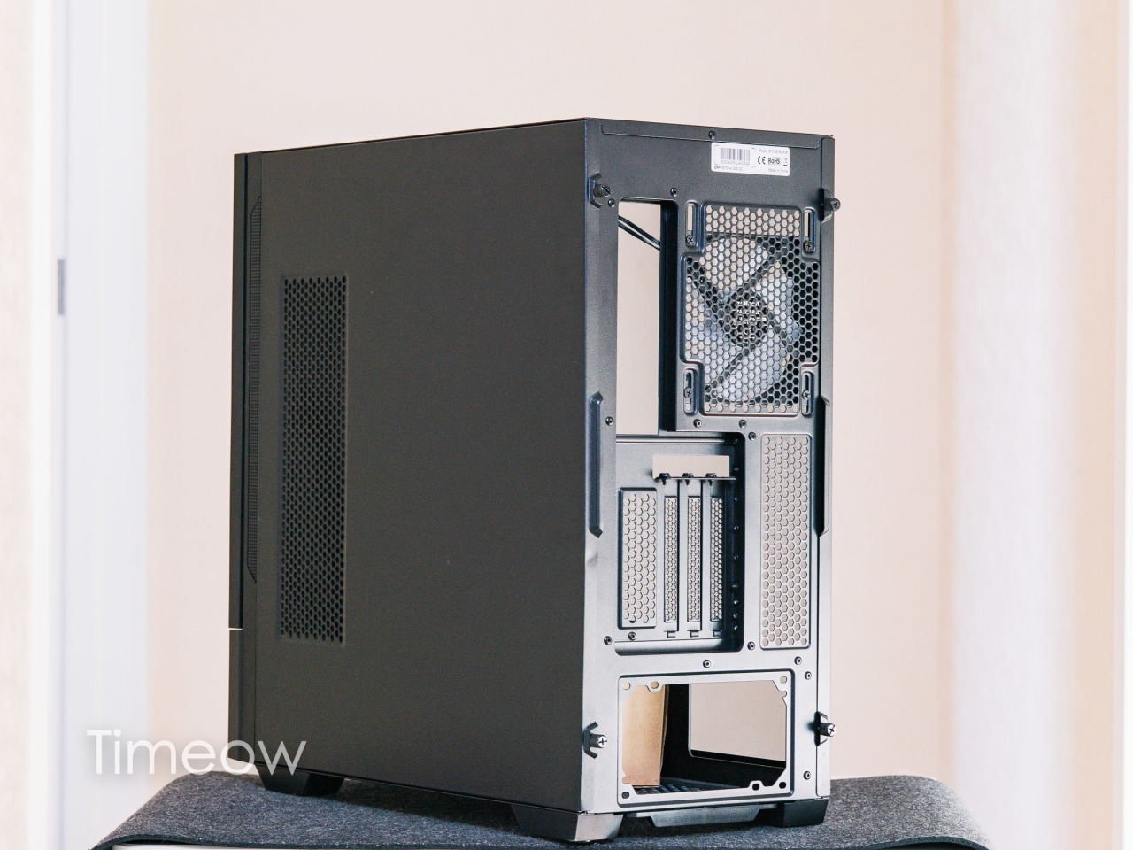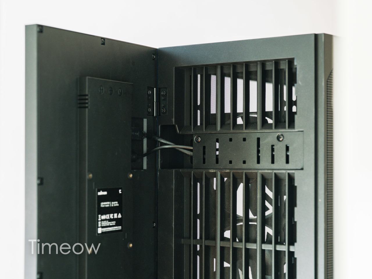 機箱背部有着非常密集的鏤空,一定程度上提升了散熱性能,同時也預留了線材凹槽,在插上插頭後不至於讓插頭顯得過於突出。