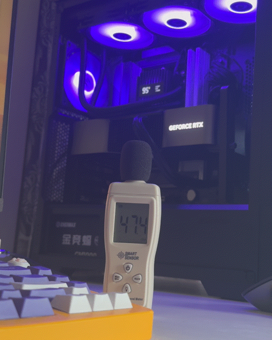風冷+機箱風扇滿載(接近2000R/M)的情況下,整機的噪音始終保持在47分貝左右,作爲對比,圖書館的環境噪音約39分貝,這意味着即使整機在滿載狀態下,噪音都不會干擾工作或休息,ZALMAN的機箱+水冷,配合安耐美的電源,噪音控制的相當可以啊!