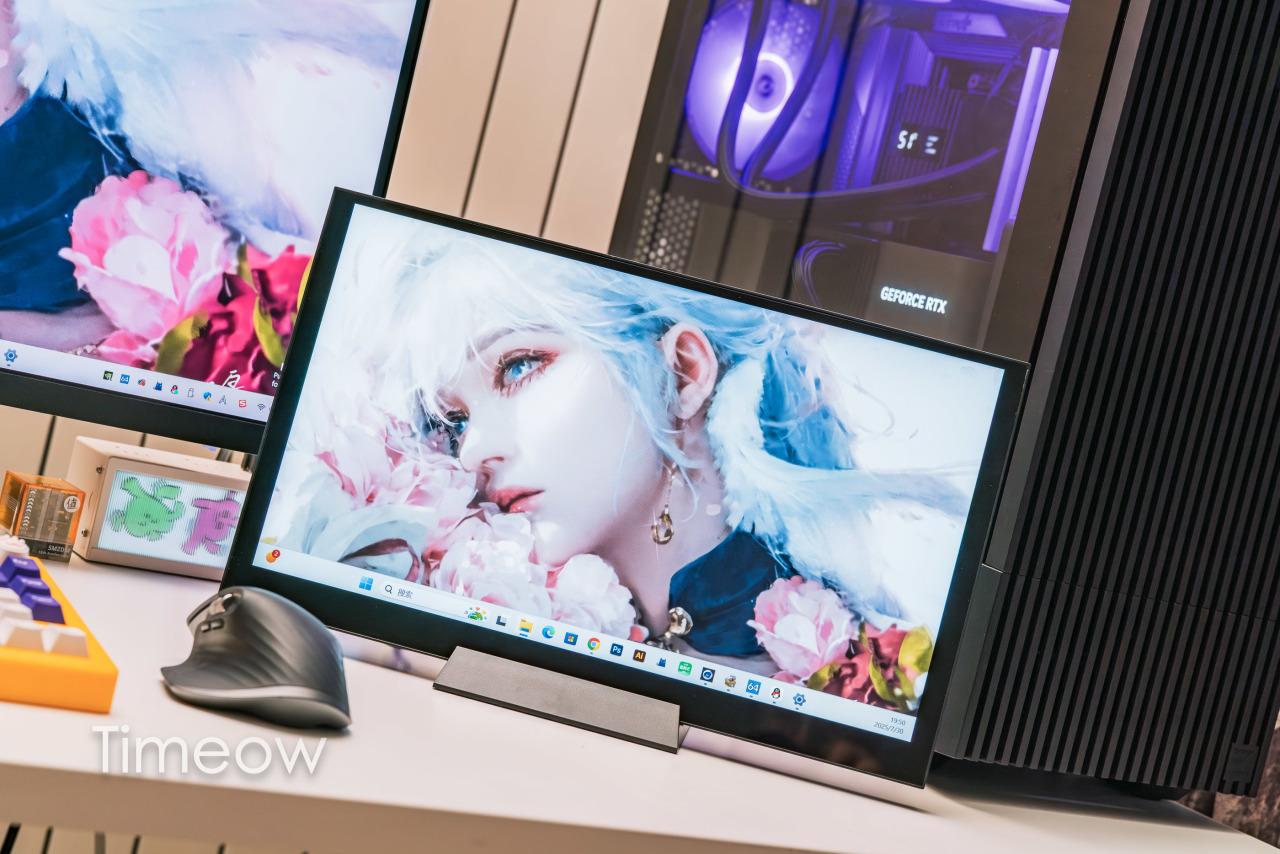 更棒的是,這塊兒屏還能拆下來,用包裝隨附的顯示屏支架↑放在桌面上打造副屏↓