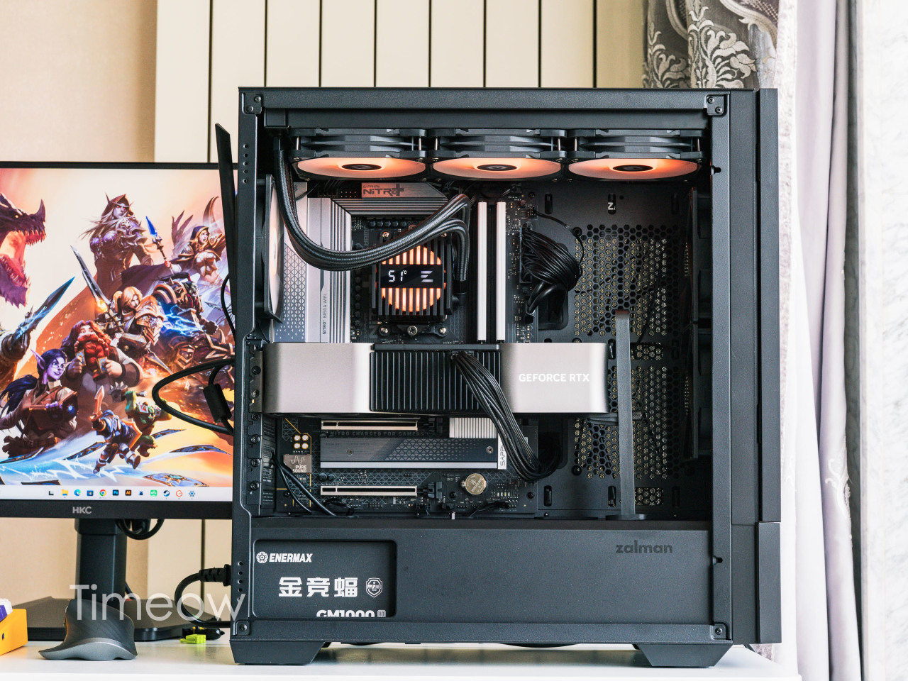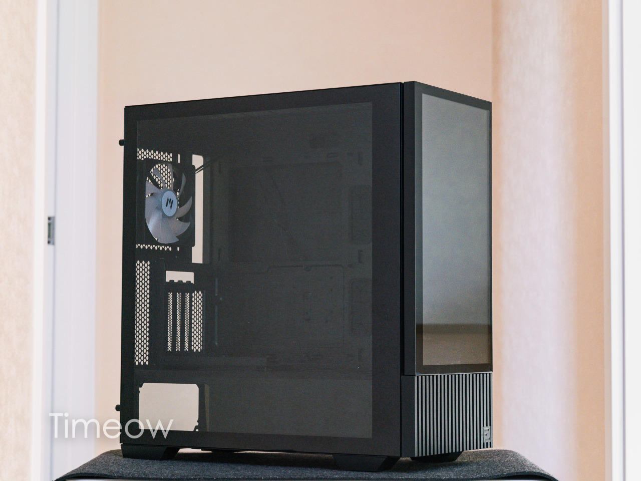 它的側邊是厚實的鋼化玻璃透明面板,方便觀察內部,提升整機的視覺效果。