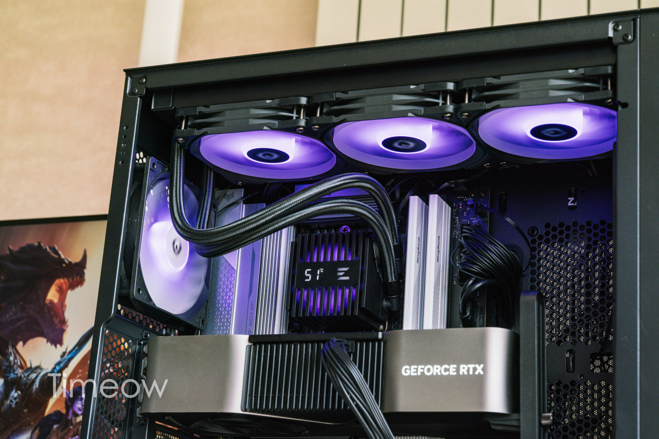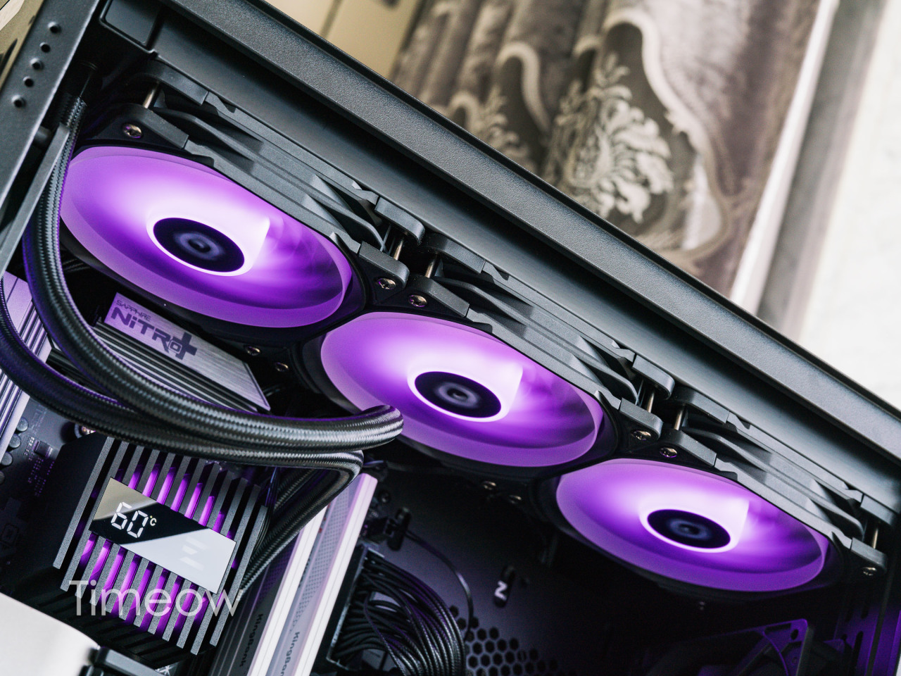 更何況它的泵頭和風扇都支持ARGB神光同步,和這款機箱非常搭。顏值這塊拉滿了。