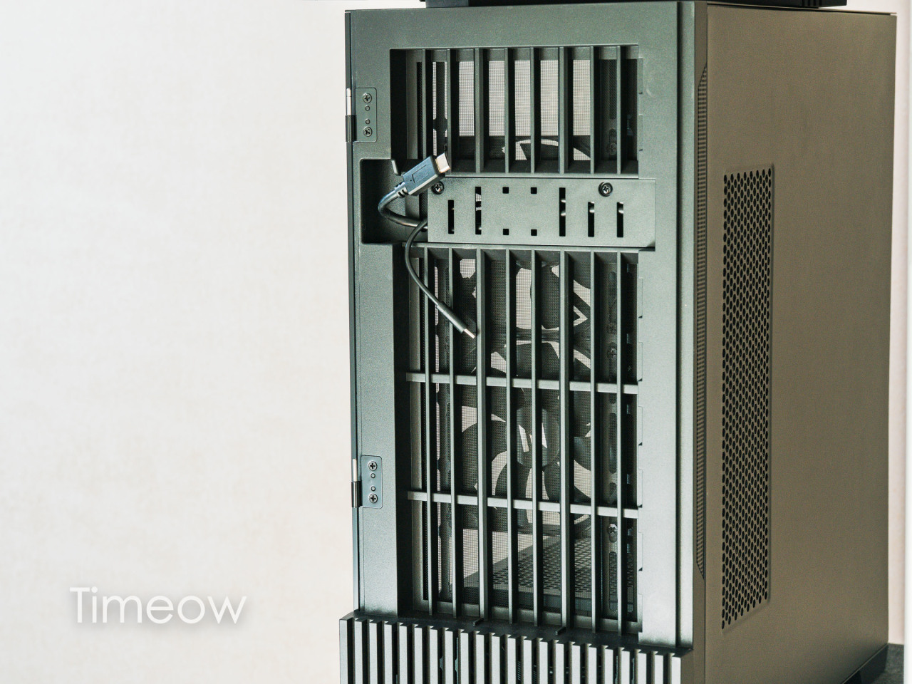 同時,我們也能注意到,顯卡槽位貌似是豎着的: