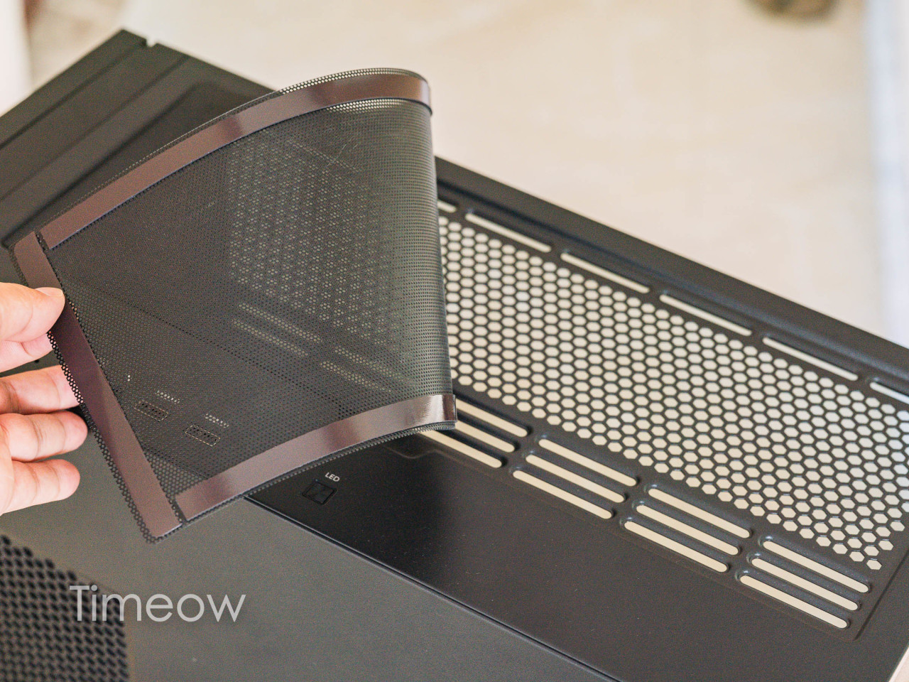 頂部,則是機箱風扇/360水冷的安裝位置了,ZALMAN給它配了一塊磁吸防塵網,用久了方便拆下來做清潔,處女座福音。