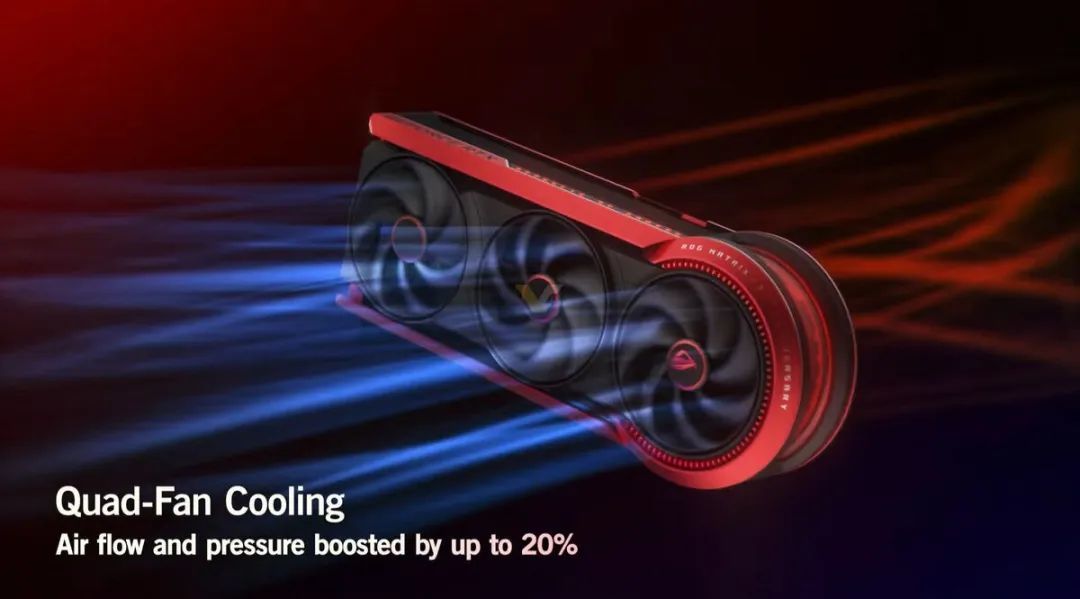 散熱配置爲四風扇,而不是之前猜測的風水一體設計,這倒是目前在ROG Astral夜神中已經出現的設計。新駭客採用了專利均熱板和液金導熱,此外,華碩號稱在800W供電下,新駭客能夠提升10%的性能。