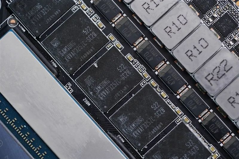 来自三星的GDDR7显存颗粒,一共12枚构成24GB容量。