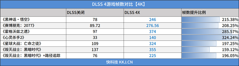 《星球大战:亡命之徒》在开启DLSS 4最高的4X级别多帧生成时,在4K分辨率下的测试帧率为324。