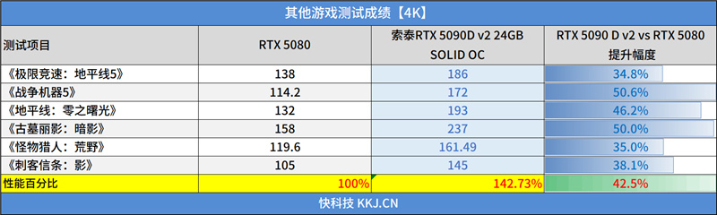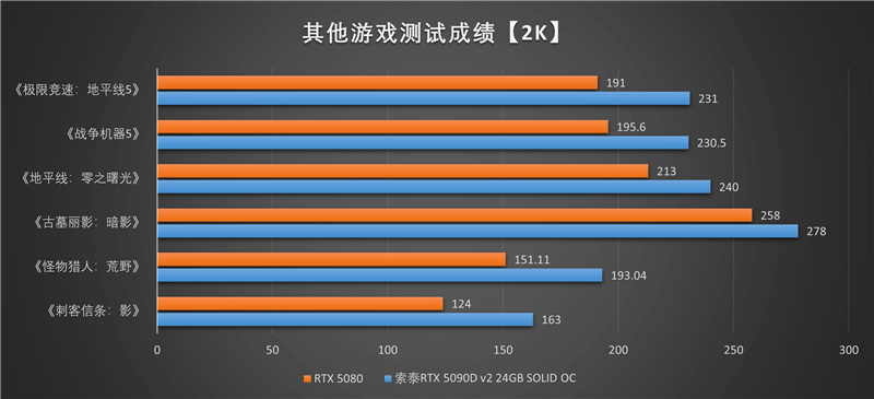 我们也测试了一下索泰RTX 5090 D v2 24GB SOLID OC显卡在2K游戏中的表现,供玩家参考。