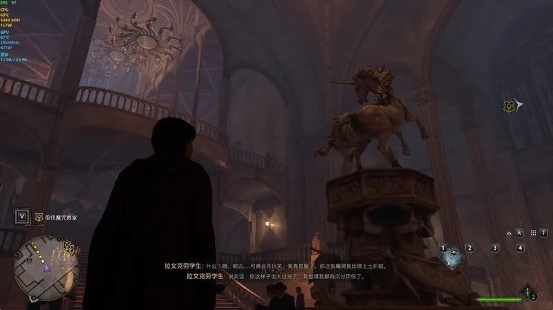 在《霍格沃兹之遗》中,使用超高画质预设,DLSS超分辨率设置为平衡,记录4K分辨率下的游戏帧数。