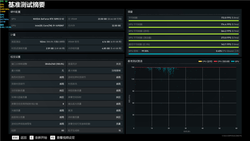 在《战争机器5》中,使用4K分辨率和超高画质进行测试,平均帧率为172.0。