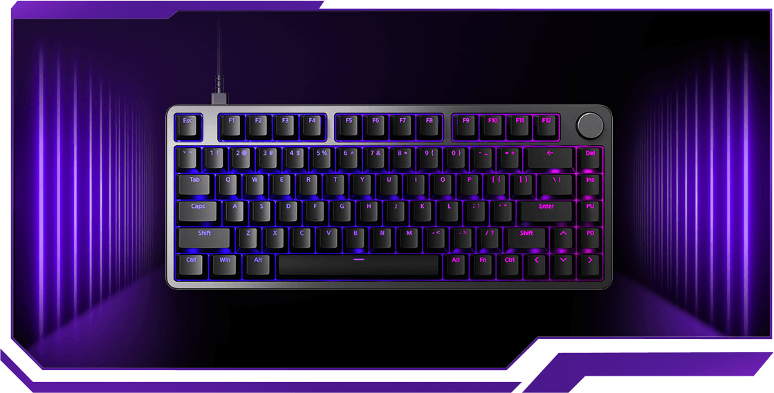 该键盘采用有线连接和CNC铝制外壳,采用75%配列,配备音量旋钮。