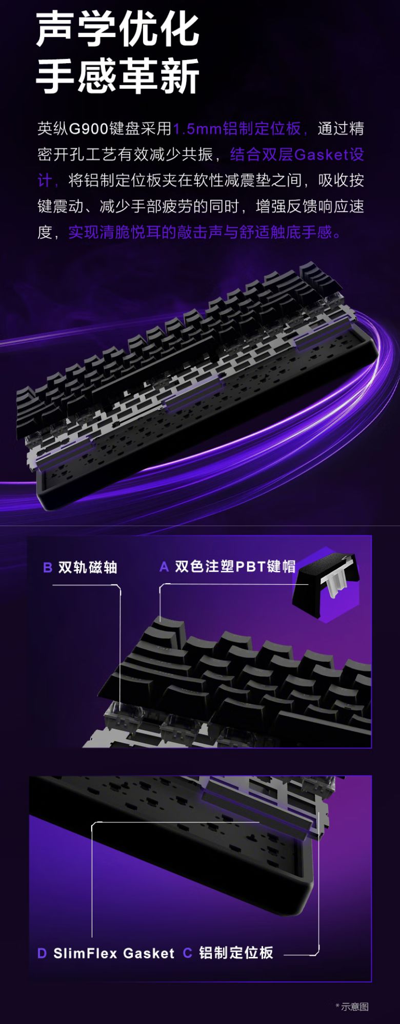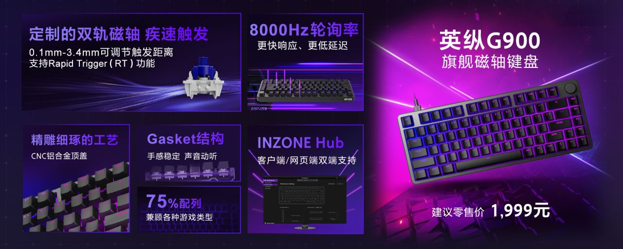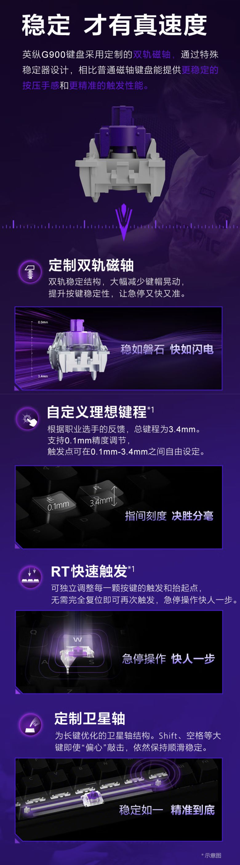 使用定制双轨磁轴,0.1-3.4mm键程可调,支持 8000Hz 的轮询率