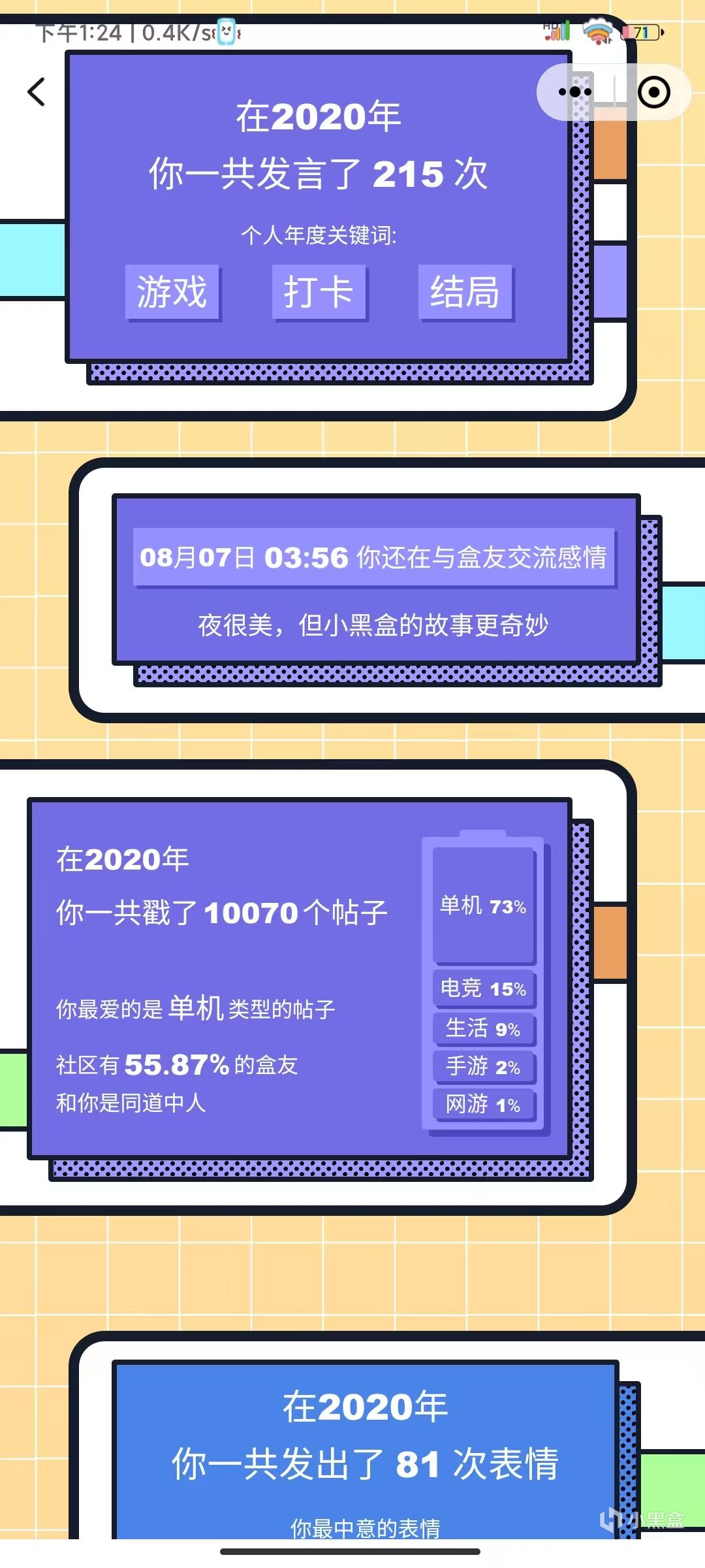 20年那会黑盒最初的几个活动让我尤为垂涎欲滴;春节有好事多磨、夏日有神来之笔、寒假有假期推荐、电影有杂谈合集,新游戏来了免不了创作爆发,新电影上了也有一堆盒友做避雷,总之每一个活动后都会那么点仪式感满满的奖励,对我来说最大的遗憾就是没拿到实体奖赏。(不过我的效率和文章质量确实还有待提升。)