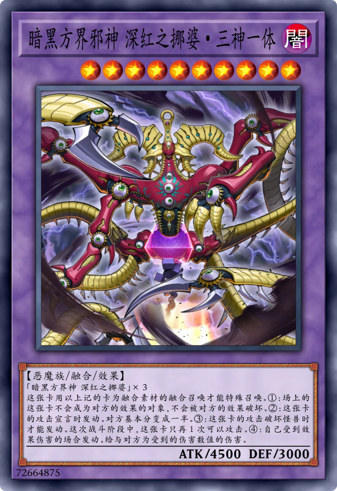 其实除了青眼白龙跟无敌的赛博多拉贡之外,游戏王的卡池里面也还有不少是以3只同样的怪兽作为素材进行融合召唤的融合怪兽。