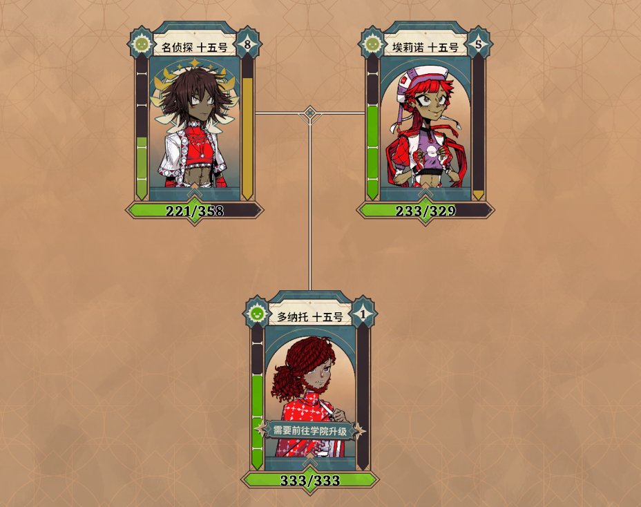 你看,去闖關,變得更強,把等級升高了屬性提上來之後再去結婚培養子嗣,讓子嗣們去學院轉個職升幾級,再讓他們作爲新關卡的主力,這遊戲邏輯就形成了一個閉環。