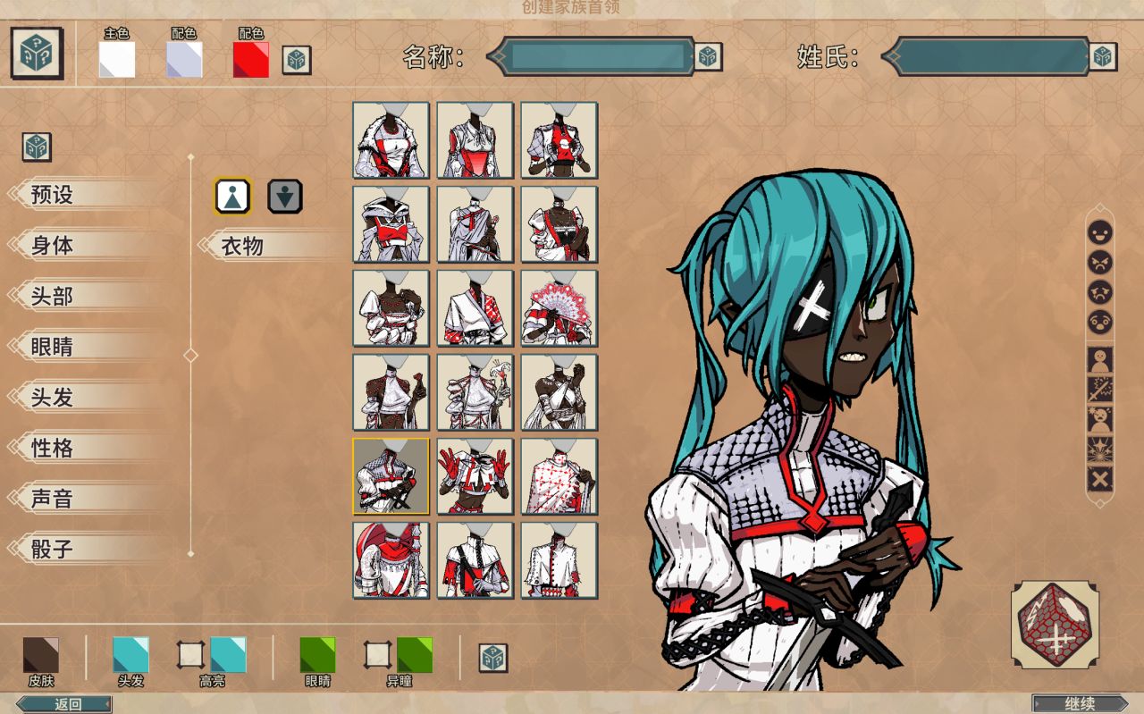 不過話說回來,《骰子騎士錄》的捏臉和時裝確實做的相當豐富,已經快趕上某些CRPG遊戲了,而且美術的風格也相當前衛。所以偵探趕緊一頓設計,終於有了一個讓我滿意的形象。看這不拘一格的散亂秀髮,看這目光堅定的小眼神,這,這簡直就是我本人呀!