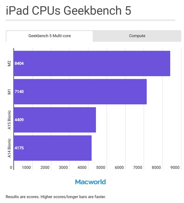 iPad处理器Geekbench 5多核跑分对比: