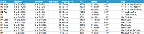 Mac处理器规格对比: