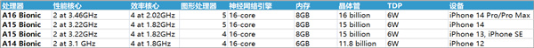 A系列处理器型号比较简单,每年更新一代,最新的是iPhone 14 Pro搭载的A16。