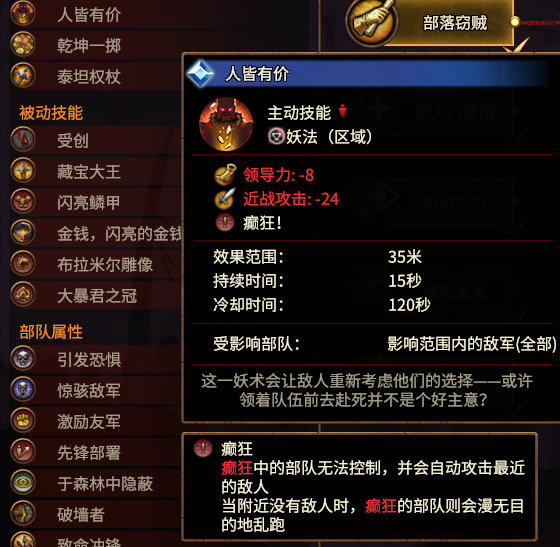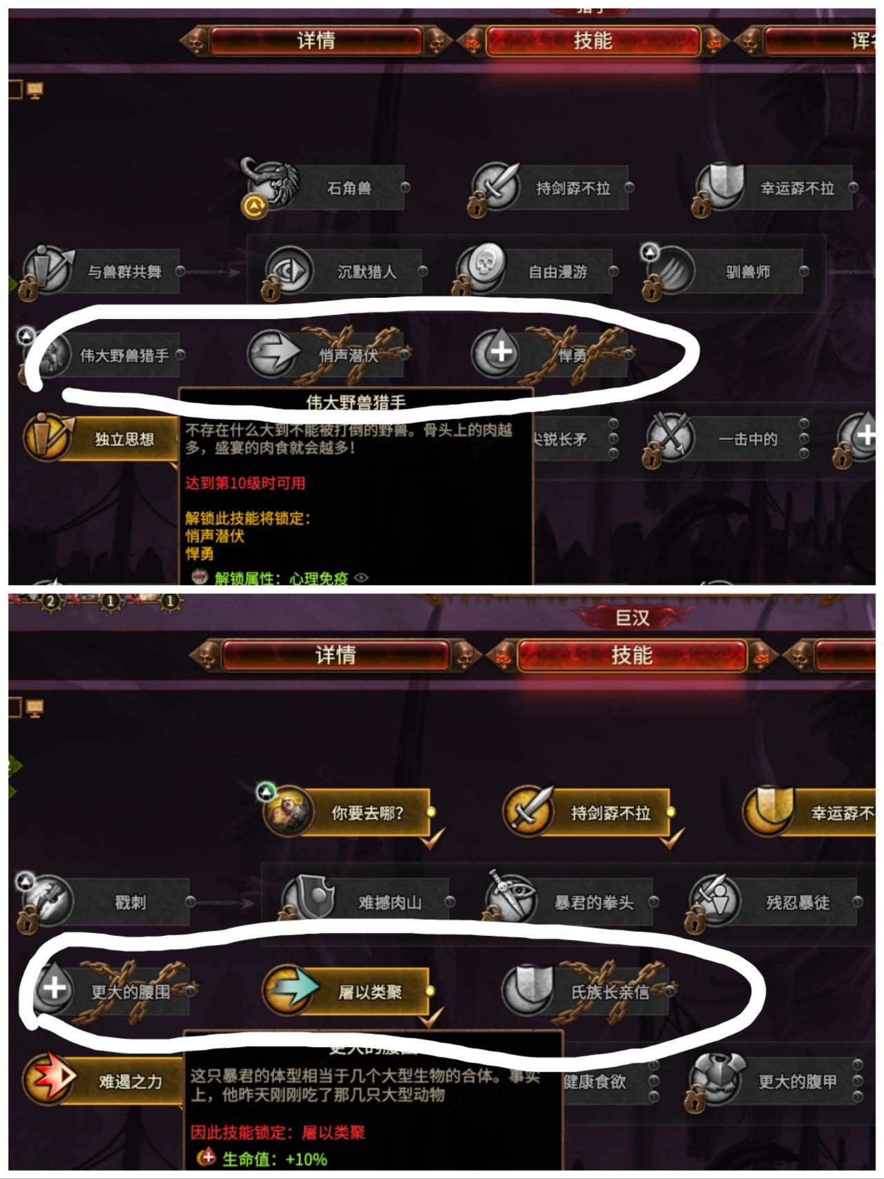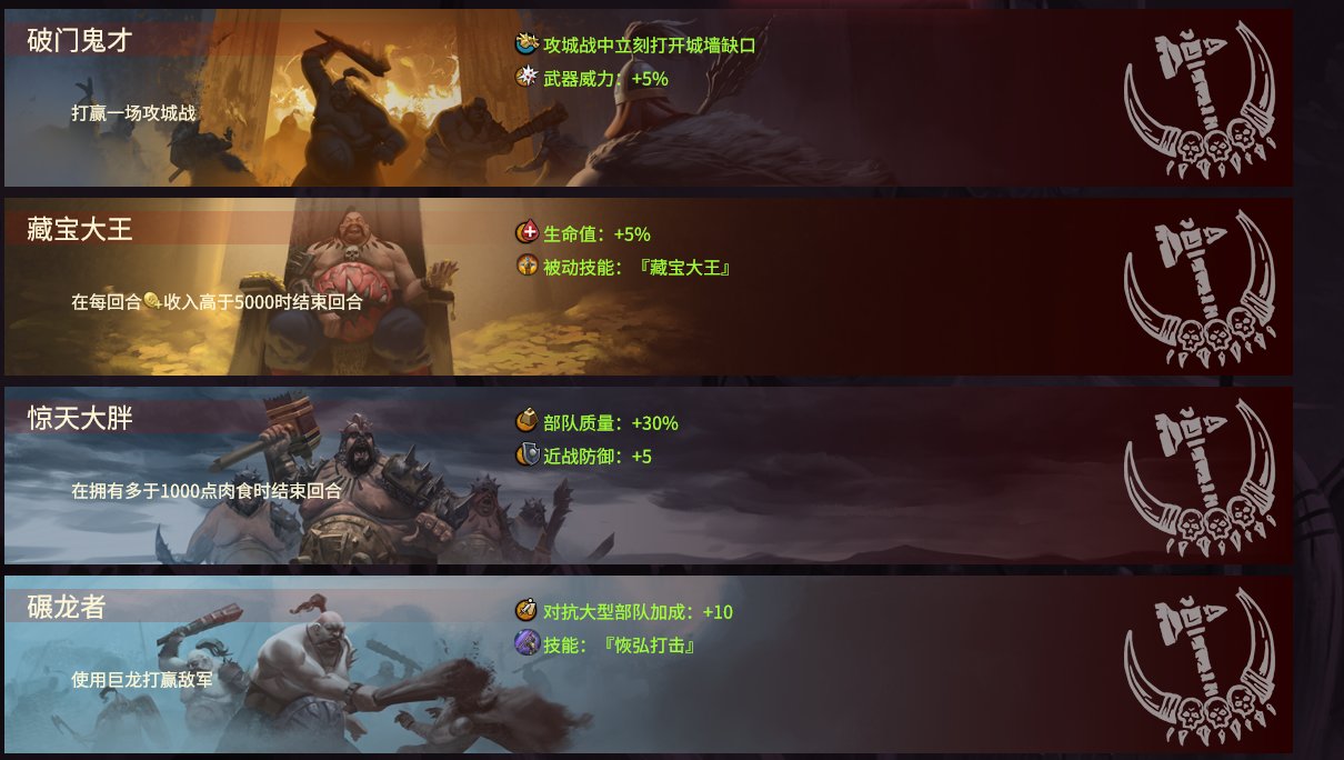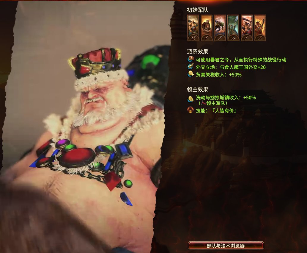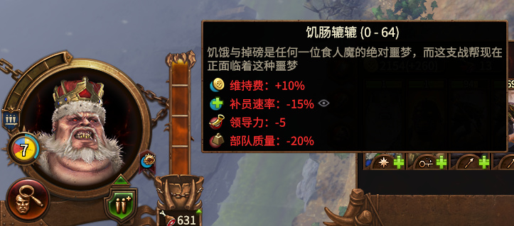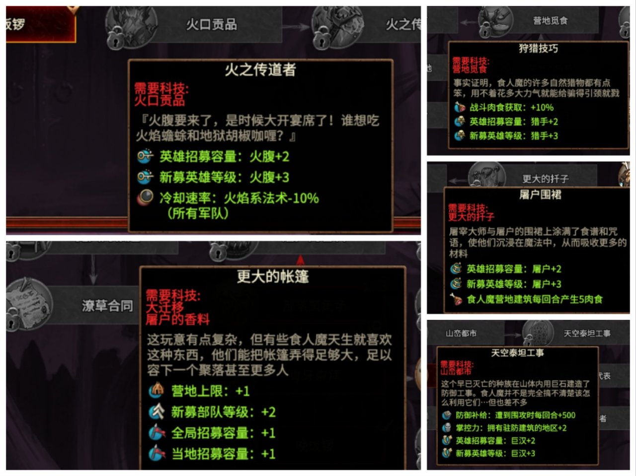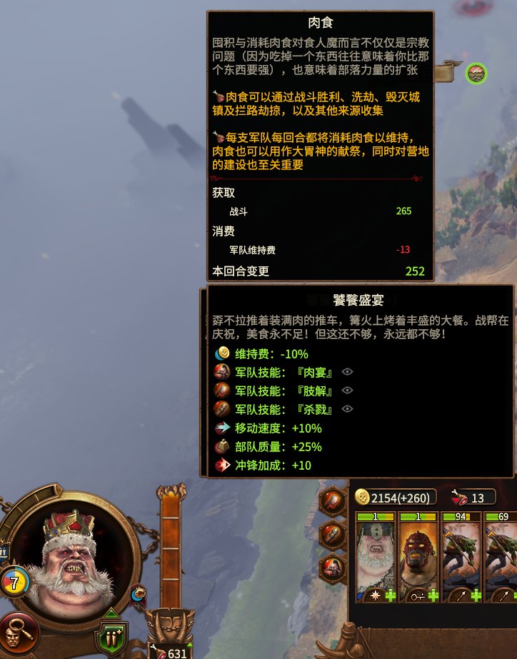这是食人魔军队的核心buff,通过战斗胜利、洗劫城镇、毁灭城镇得到肉食,肉食越多部队增益则越多越强。