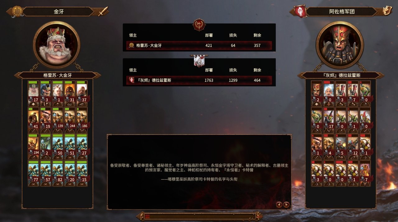 金牙大军与兽人waaagh军在火山口进行绞肉大战。大金牙一声怒吼,那些围观的食人魔全都一窝蜂冲上来,将兽人们大卸八块,然后大快朵颐。