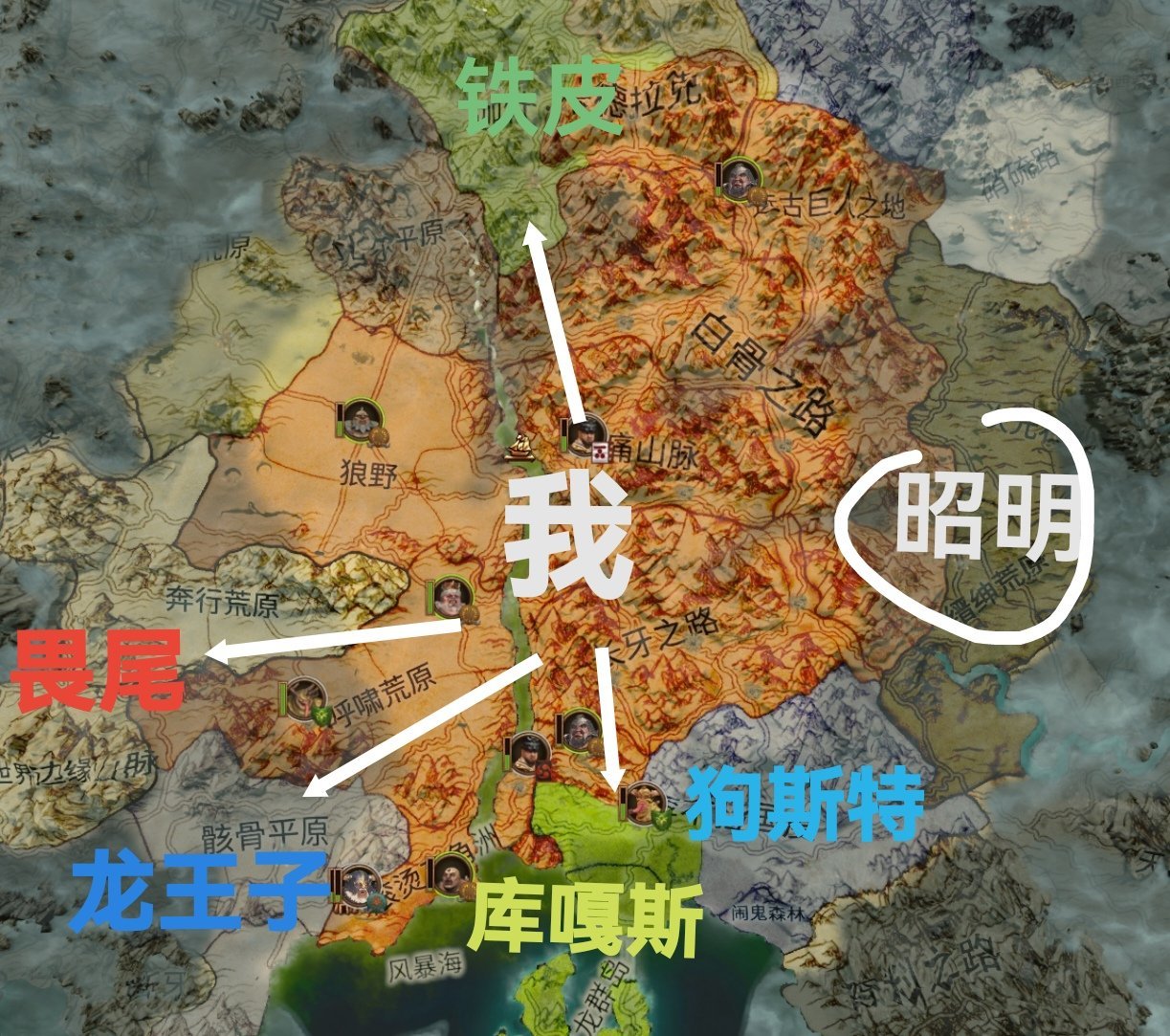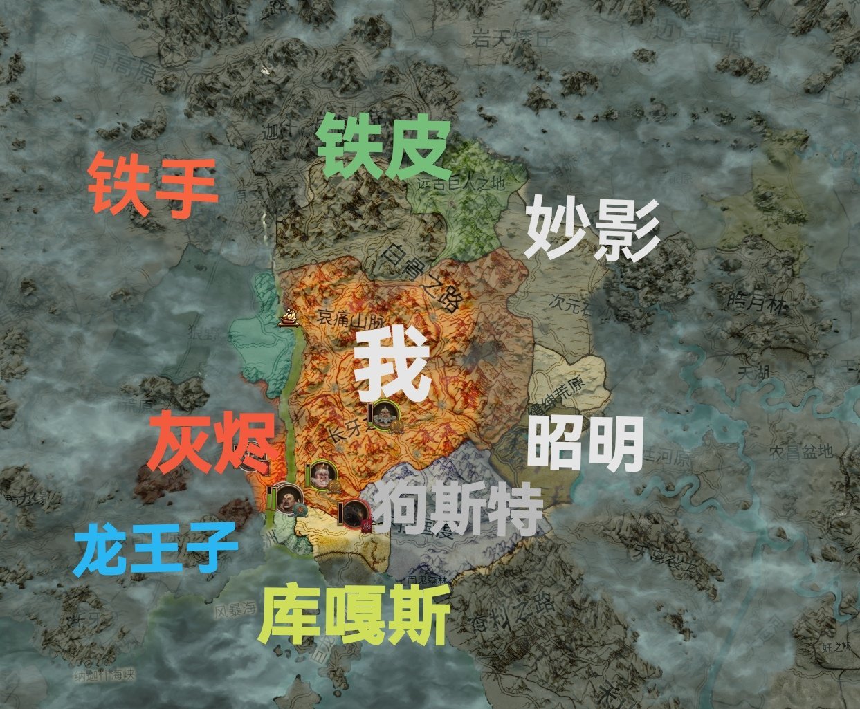 地理位置很不错,开局直接消灭、合邦大众脸,快速占领整个震旦西部山区。