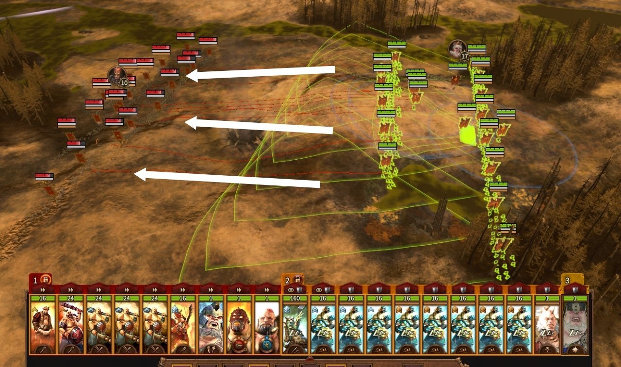 对阵库嘎斯也不难,公牛战士站一排冲锋,直接冲散纳垢的前排。